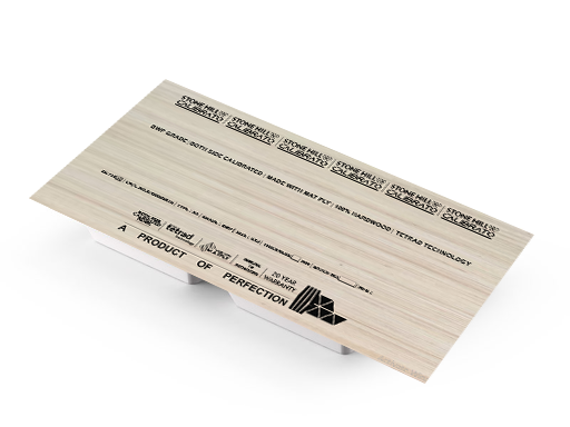 IS:303 approved, inside hardwood, moisture-resistant to 60° hot water, as per IS:303. Borer and fungal proof 15 years warranty.